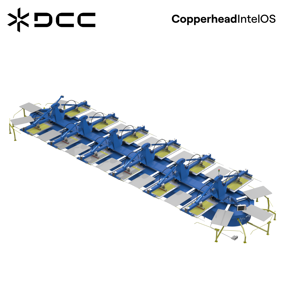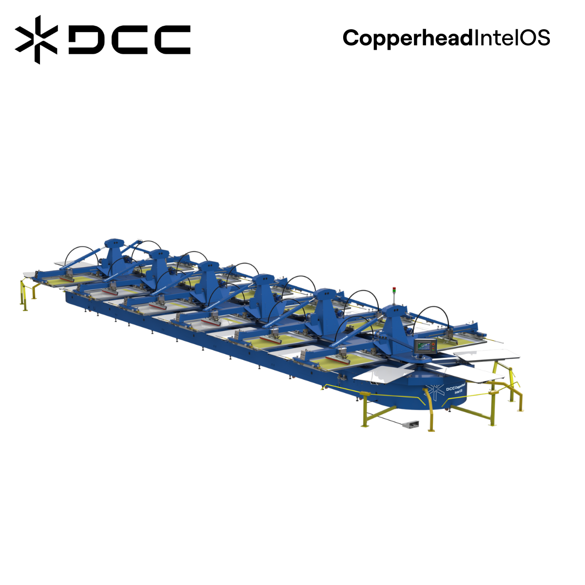 Intel OS comes in a standard Print/Flash/Print (PFP) configuration that is one of the most popular choices preferred by printers around the world. The Copperhead Intel OS is modifiable up to 40 Stations configurations to accomodate different printing & flashing needs. A high-quality, smooth- operating servo-drive indexer provides fast indexing, making Intel OS ideal for cut-piece and all-over print garments. The indexing system includes a very unique auto-tensioning feature to minimize the wear on chain.