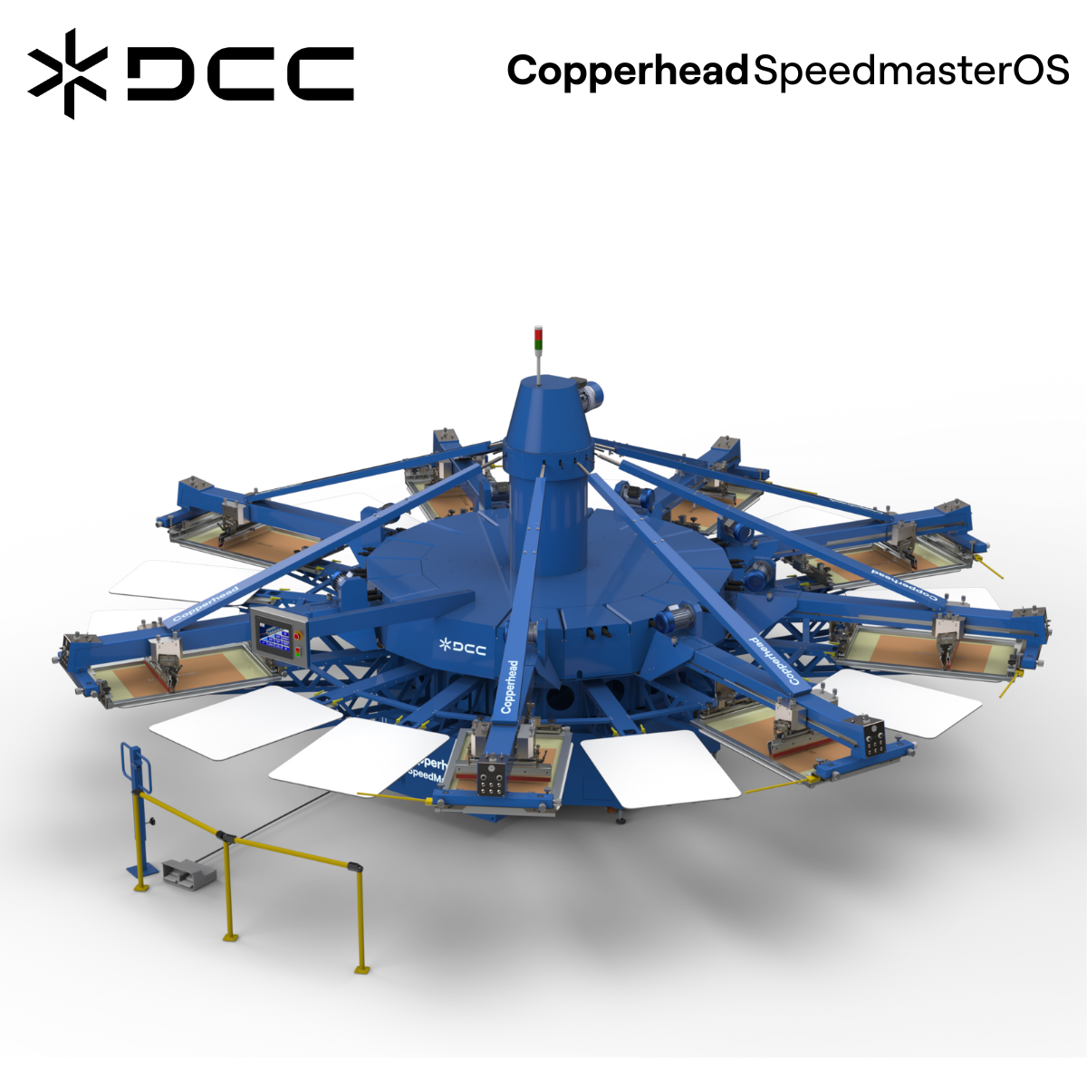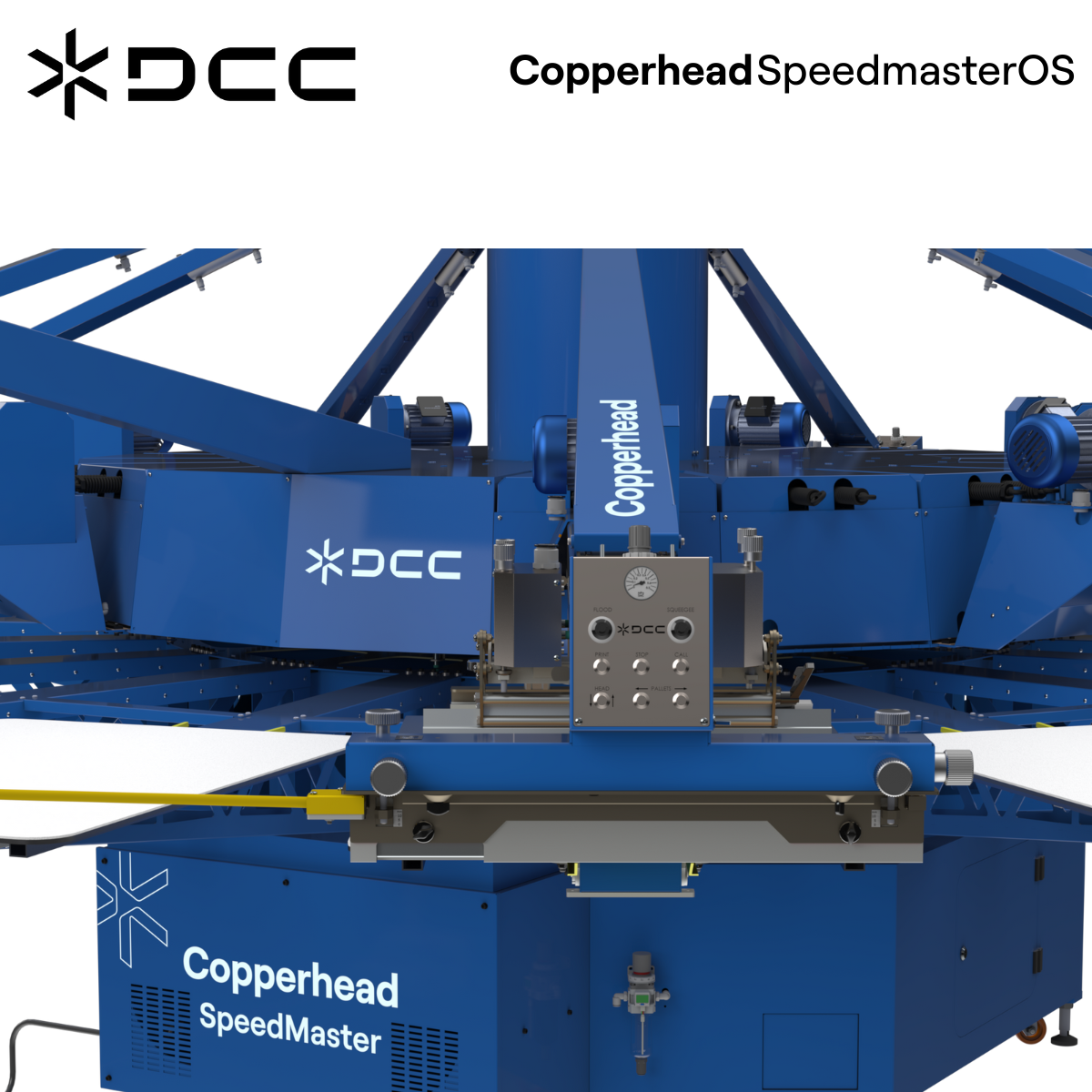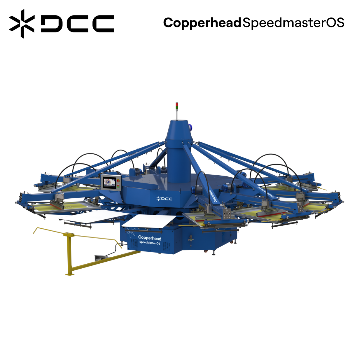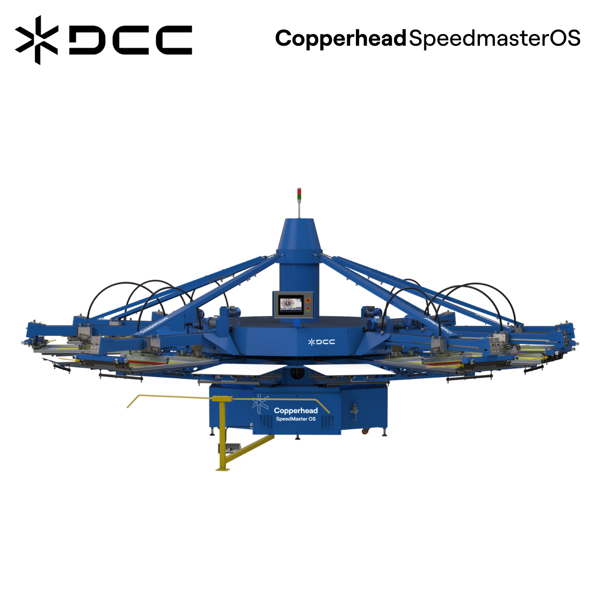 M&R Global’s Copperhead Speedmaster OS presses were built from the ground up to optimize speed, performance, flexibility, print quality, and durability. With a digital touchscreen control panel featuring icon-based labeling; an extensive variety of configurations; an unrivaled set of standard features and timesaving, output-enhancing exclusives; efficient design; and high production speed, the Speedmaster is poised to dominate the next decade of automatic screen printing.